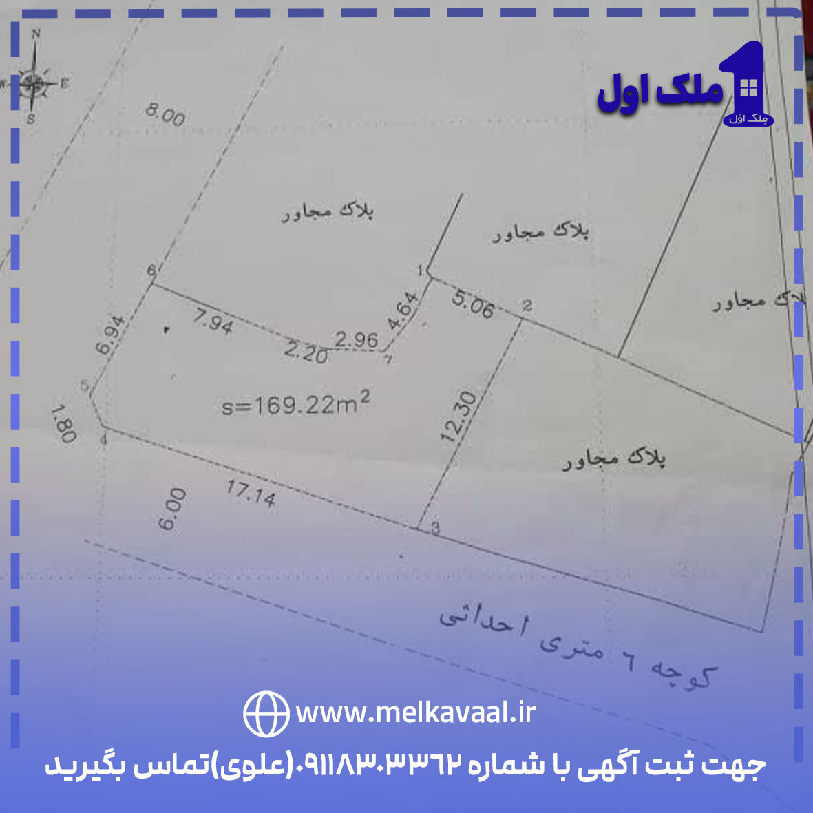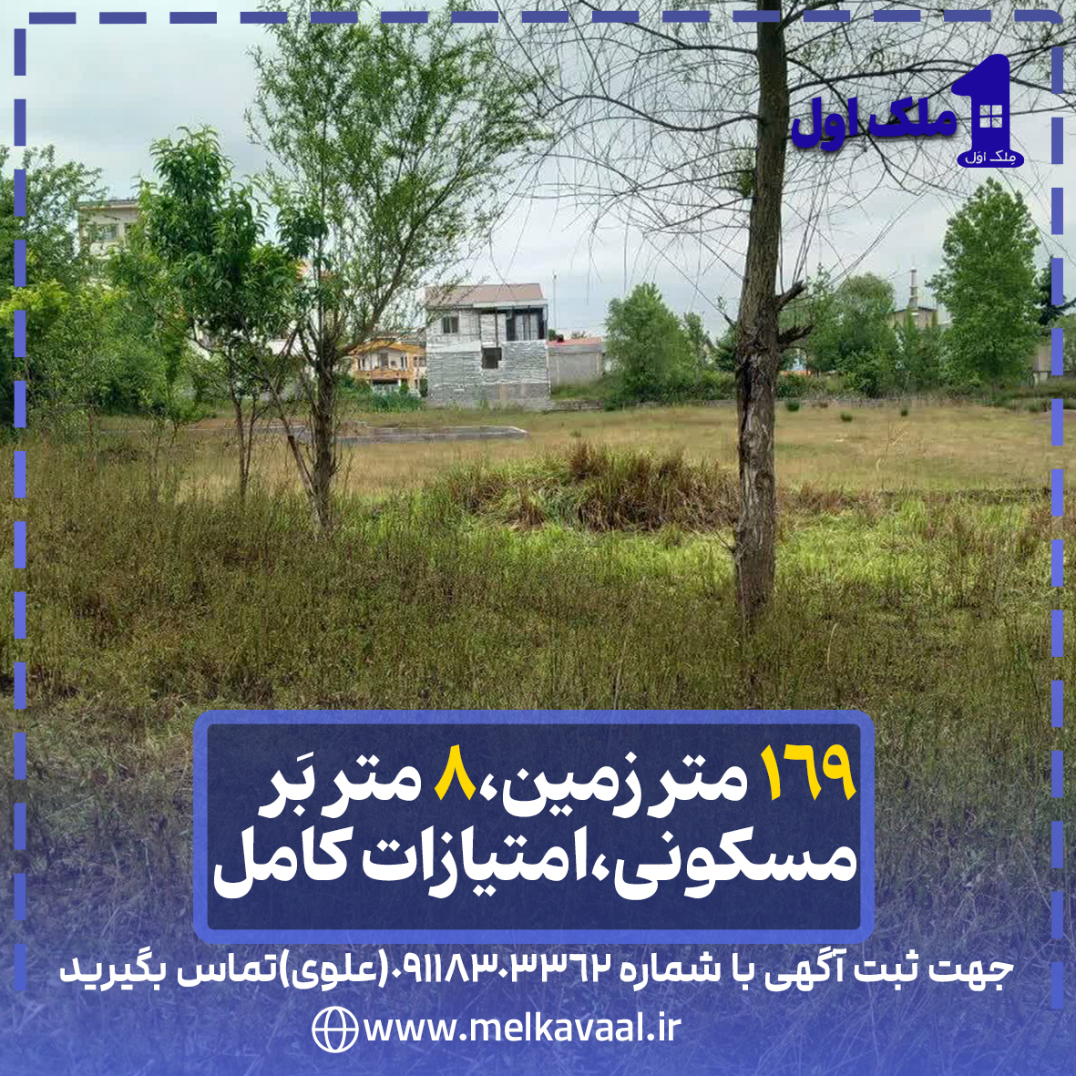 169 متر زمین،8متر بَر،املش