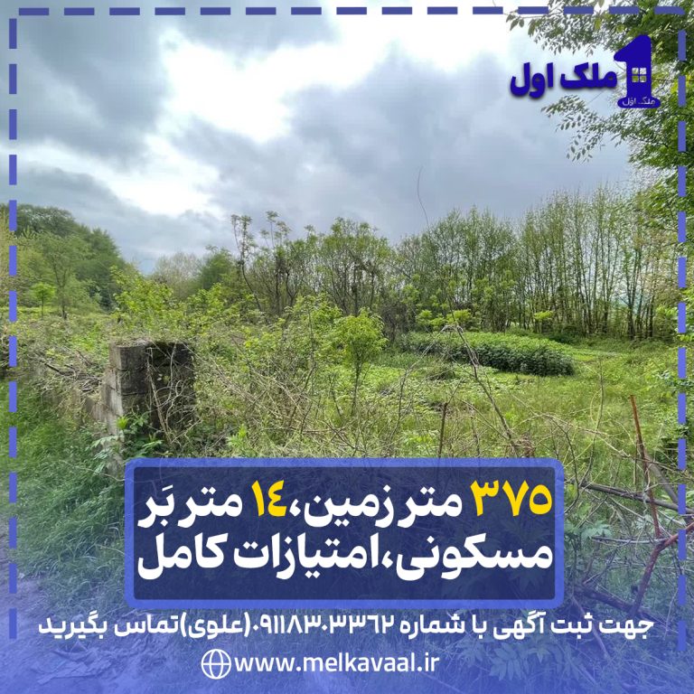 375 متر زمین،14متربَر،مسکونی