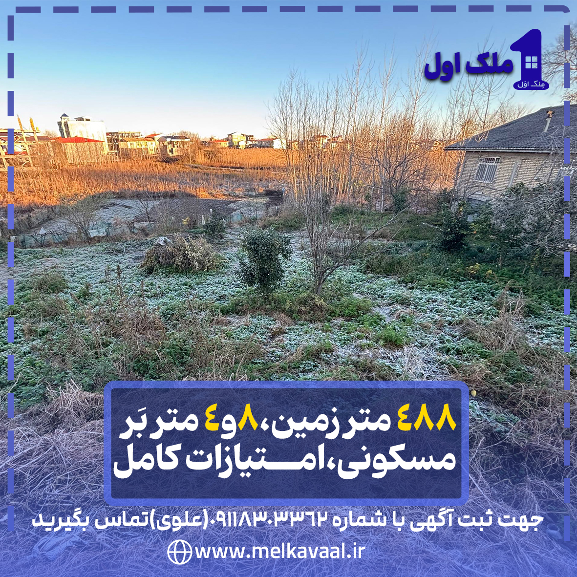 488متر زمین،4و8 متربَر،مسکونی،دارای امتیازات گامل